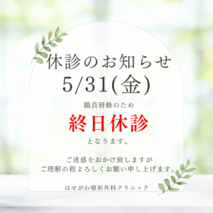 5/31(金)は職員研修のため終日お休みとなります。